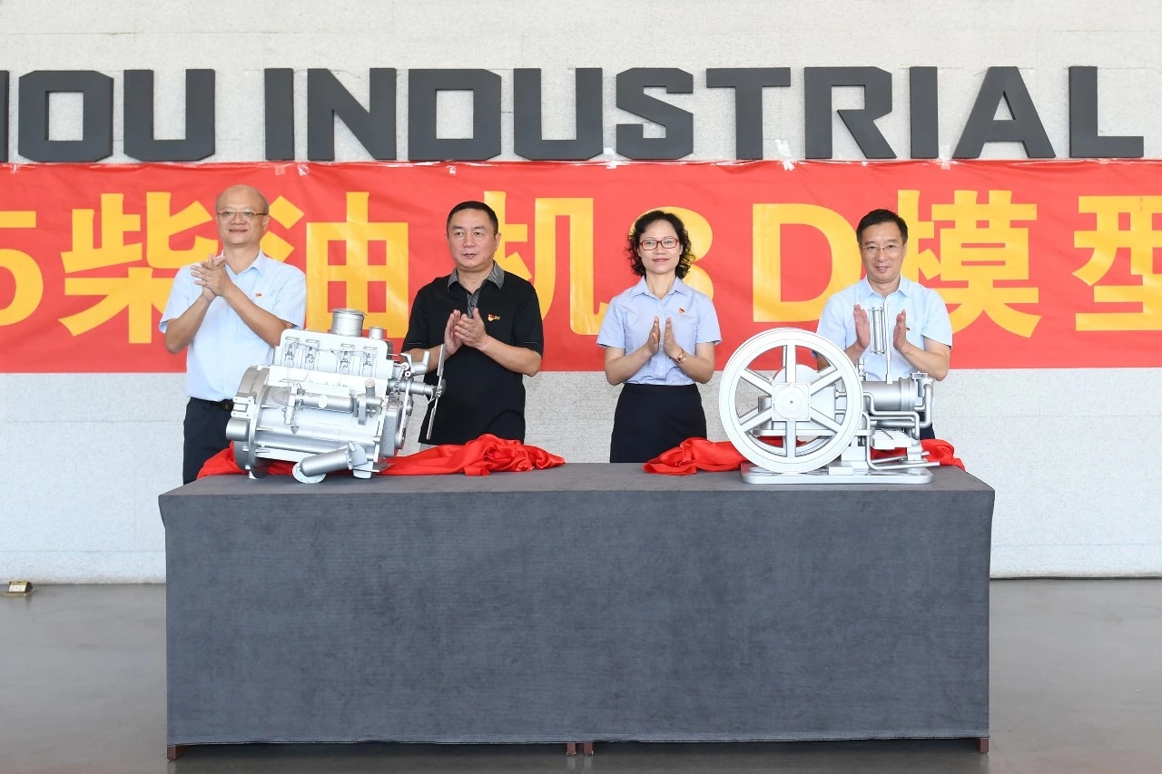 隨著大紅綢布被揭開,兩臺3D模型展現(xiàn)在人們眼前,這是五菱柳機公司向市工業(yè)博物館捐贈的兩件展品:木炭機、485柴油機3D模型。