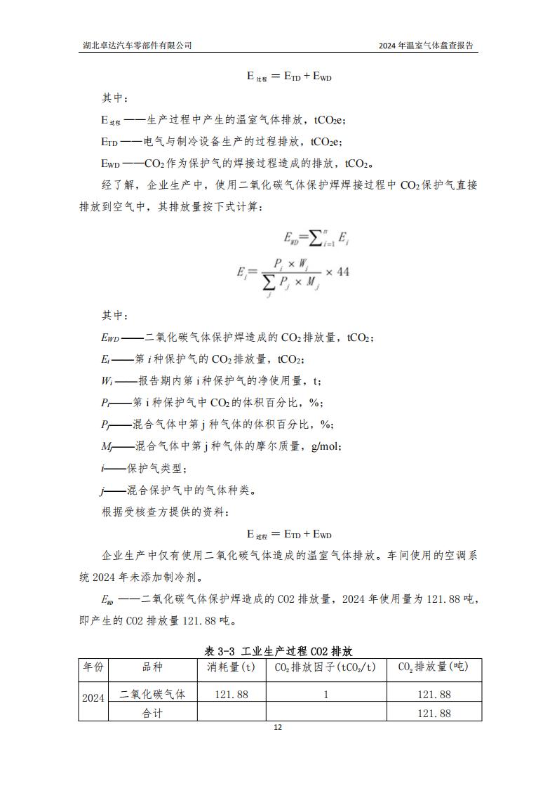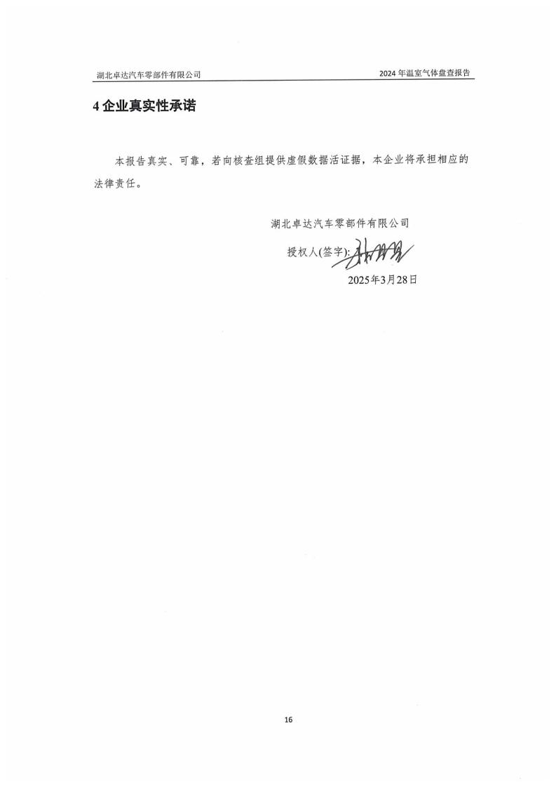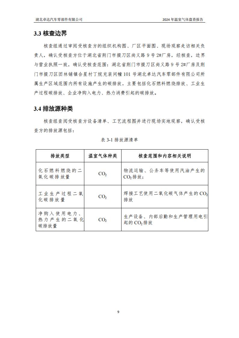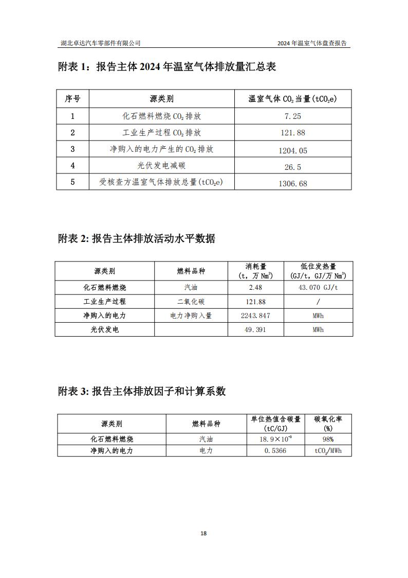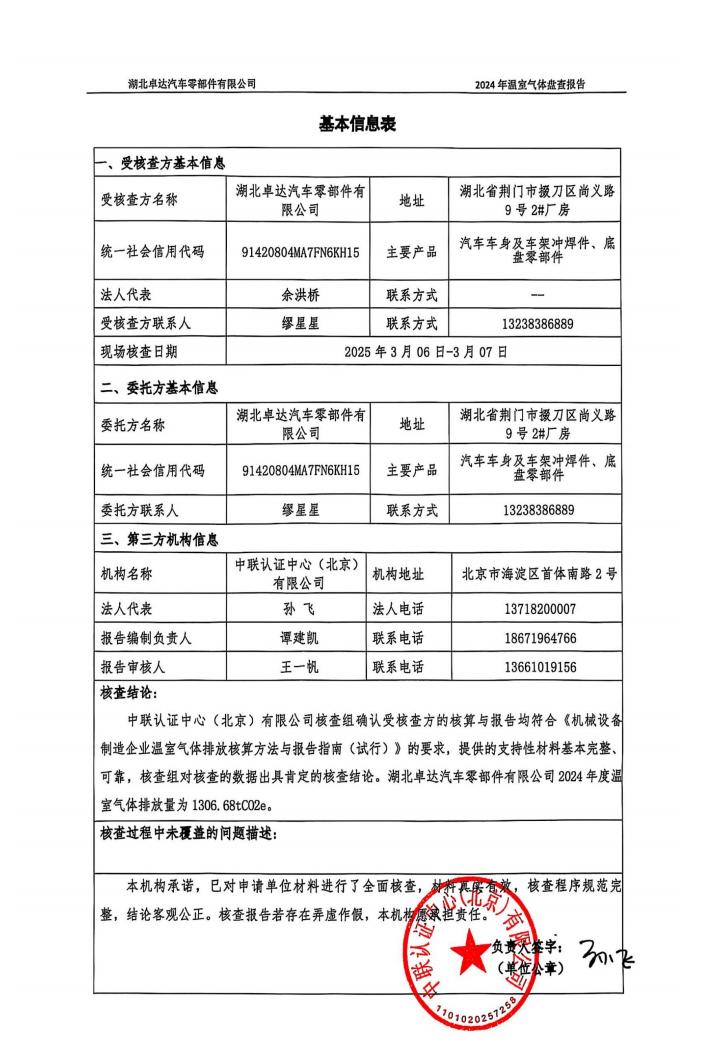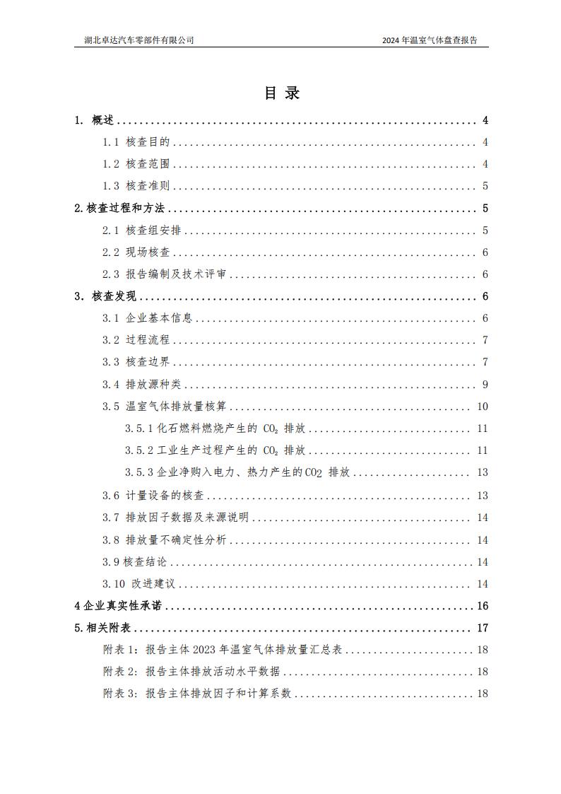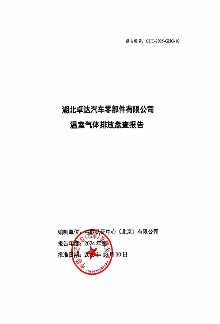 湖北卓達(dá)汽車(chē)零部件有限公司溫室氣體排放盤(pán)查報(bào)告