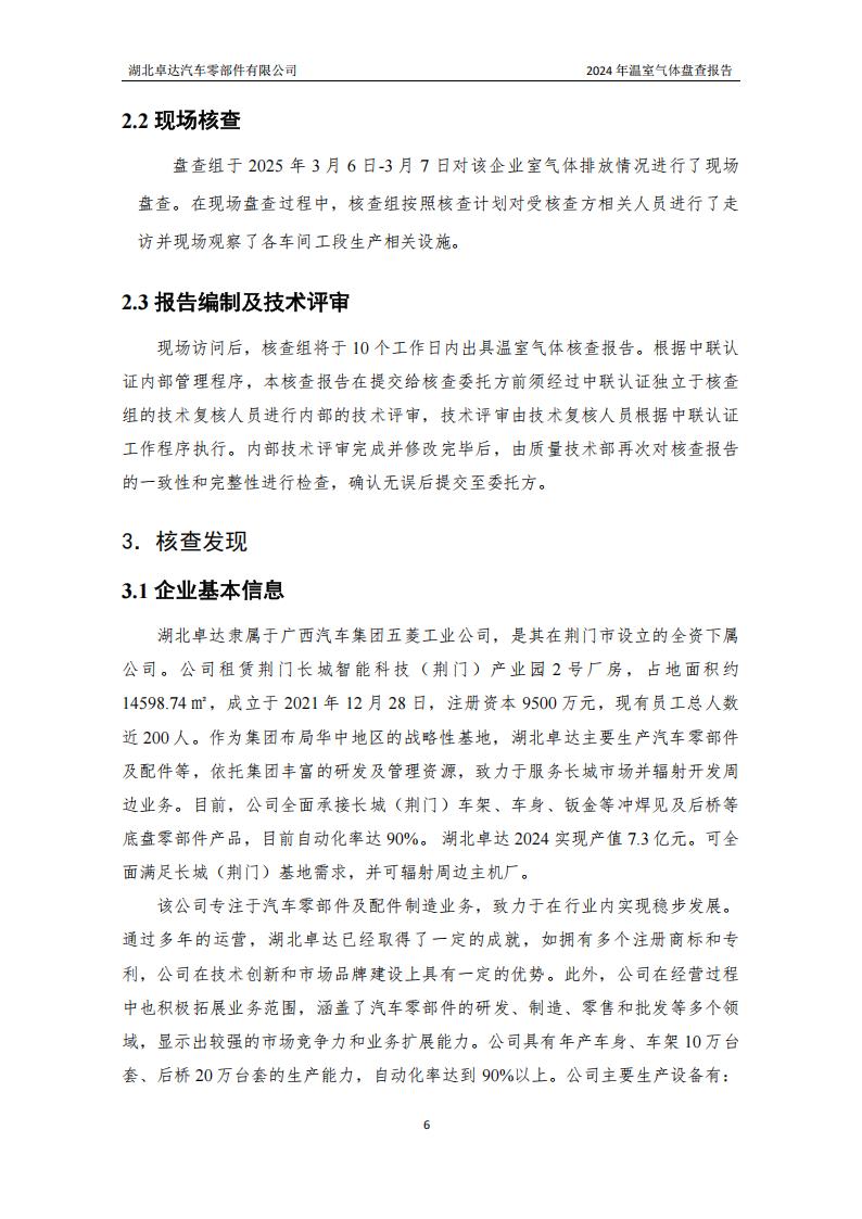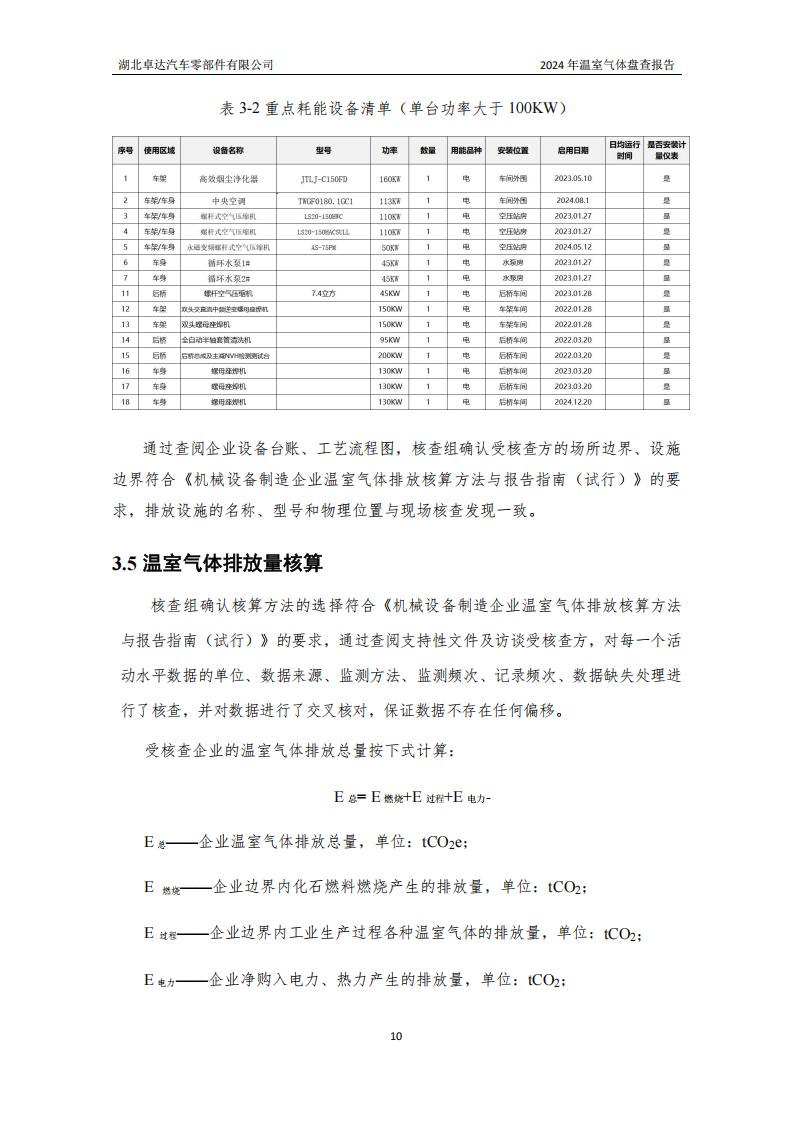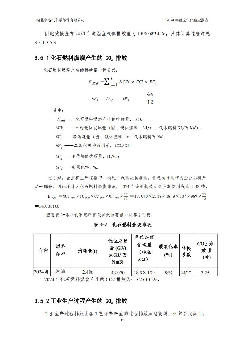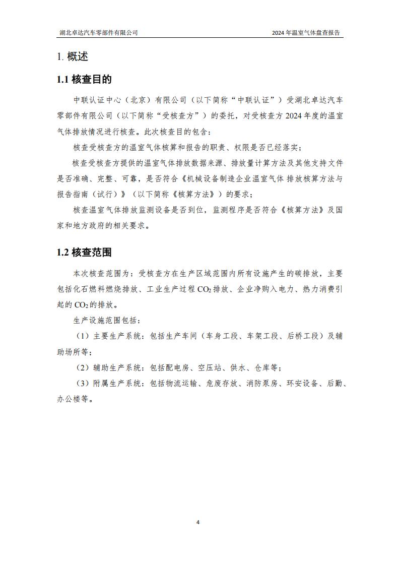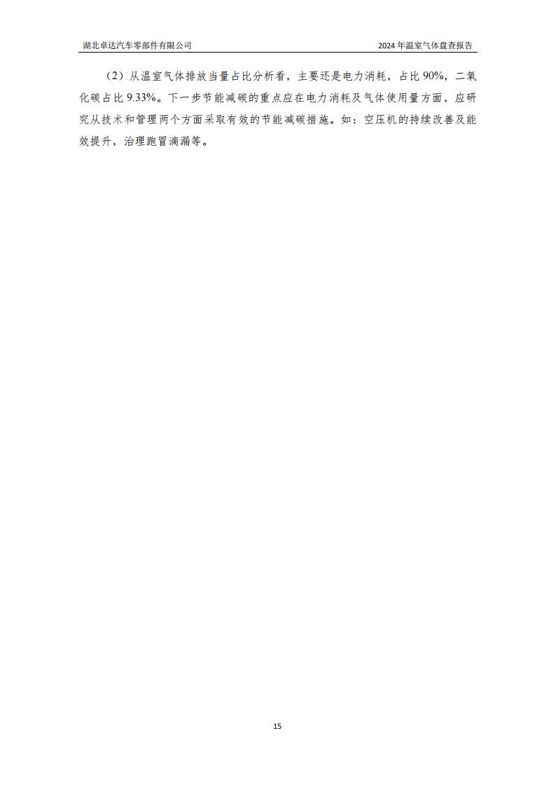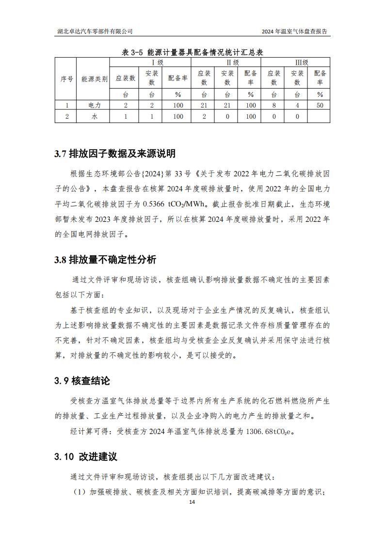 湖北卓達(dá)汽車(chē)零部件有限公司溫室氣體排放盤(pán)查報(bào)告